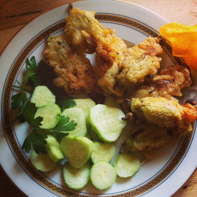 This week, we are giving the CSA a break after 3 steady weeks of summer squash heavy in the baskets. It’ll be there as an optional grab in our walk-in, but not mandatory. Just to mix it up a bit, squash blossoms will make an appearance in the basket. Squash blossoms are so beautiful and delicate and unless you are growing squash or eating out, you probably rarely see them. They are so highly perishable that I can’t imagine any major retailer of food would ever be able to sell them and if they find a way, I wouldn’t trust it. Good, more for me.