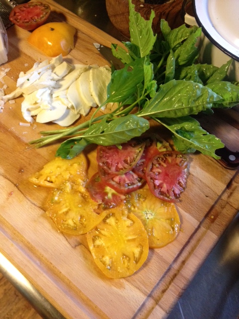 Considering we harvested 50 lbs. of heirloom tomatoes last week and then I harvested 51 lbs. again just today, I think they are here to stay. Every day I find a new one bursting with color, ready to be picked. And the cherry tomatoes are popping off as well. Since I had a bunch of cherry tomatoes piling up in my refrigerator and heirlooms all over the counter, it was time for a fresh pasta sauce.